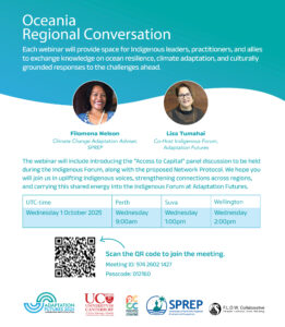 The webinar will include “Access to Capital” Panel discussion to be held during the Indigenous Forum, along with the proposed Network Protocol. We hope you will join us in uplifting Indigenous voices, strengthening connections across regions, and carrying this shared energy into the Indigenous Forum at Adaptation Futures.